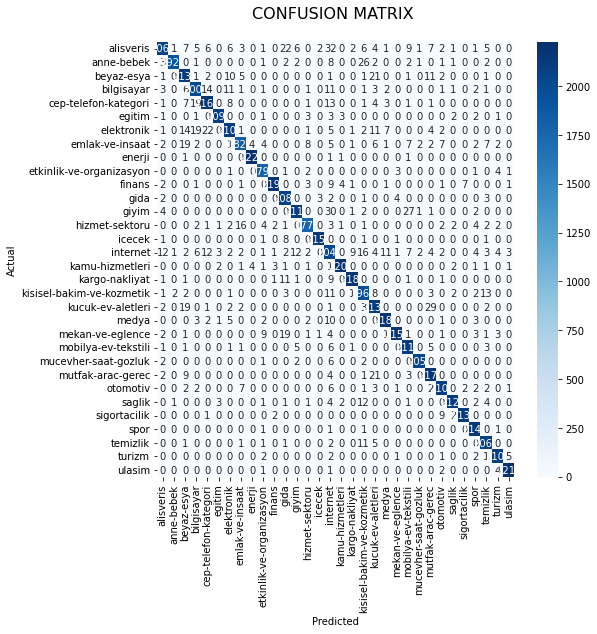 plt.title("CONFUSION MATRIX \n", size=16);
